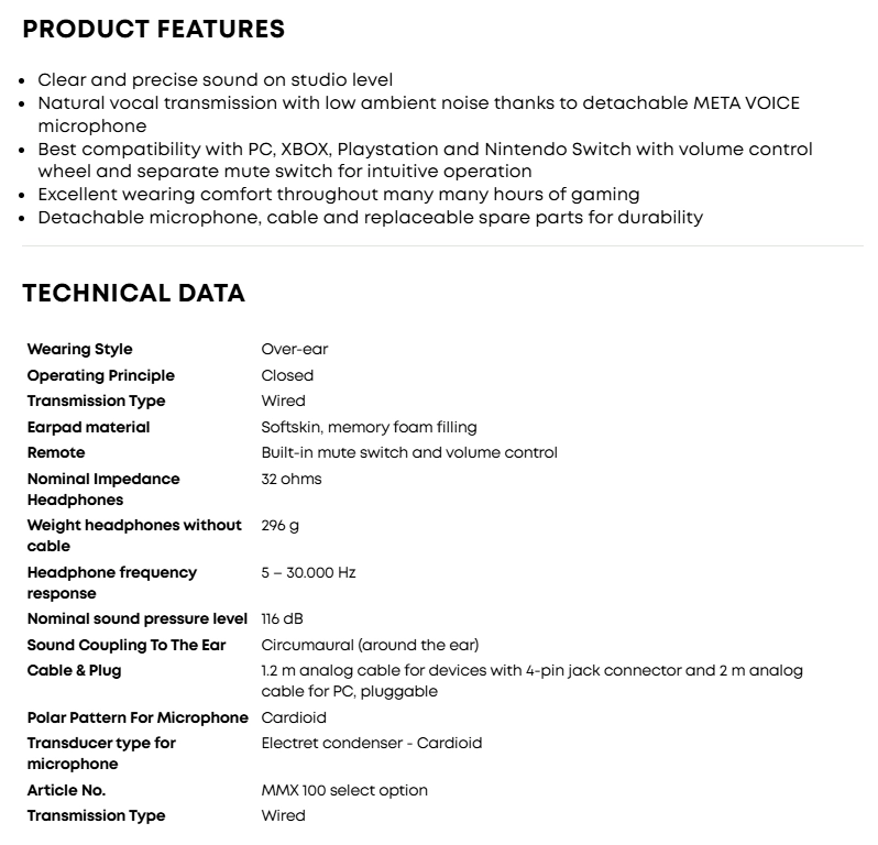 • Beyerdynamic MMX 100 Analog gaming headset Made in Germany (Grey)